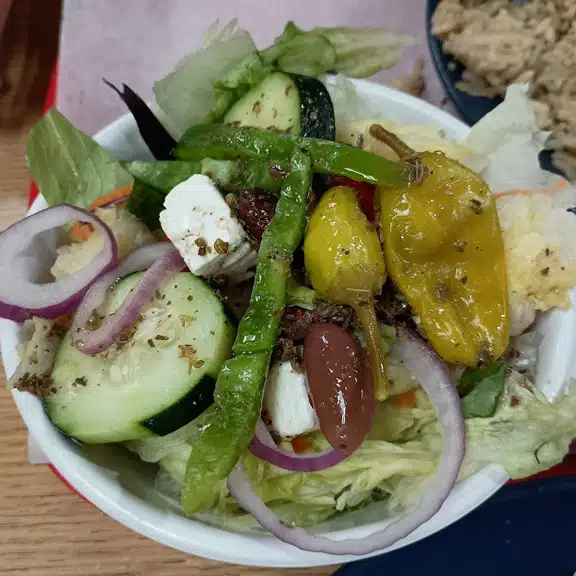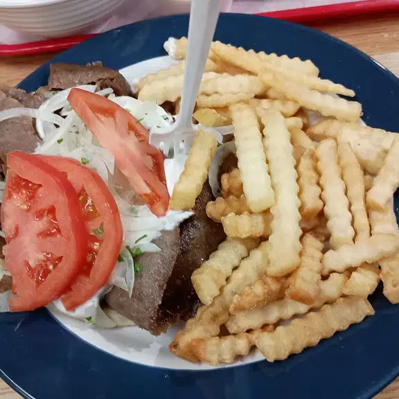 They have the homemade Ariston sauce for the gyros. It is a garlic sweet ranch tazikei. Fantastic! They also have the traditional as well.